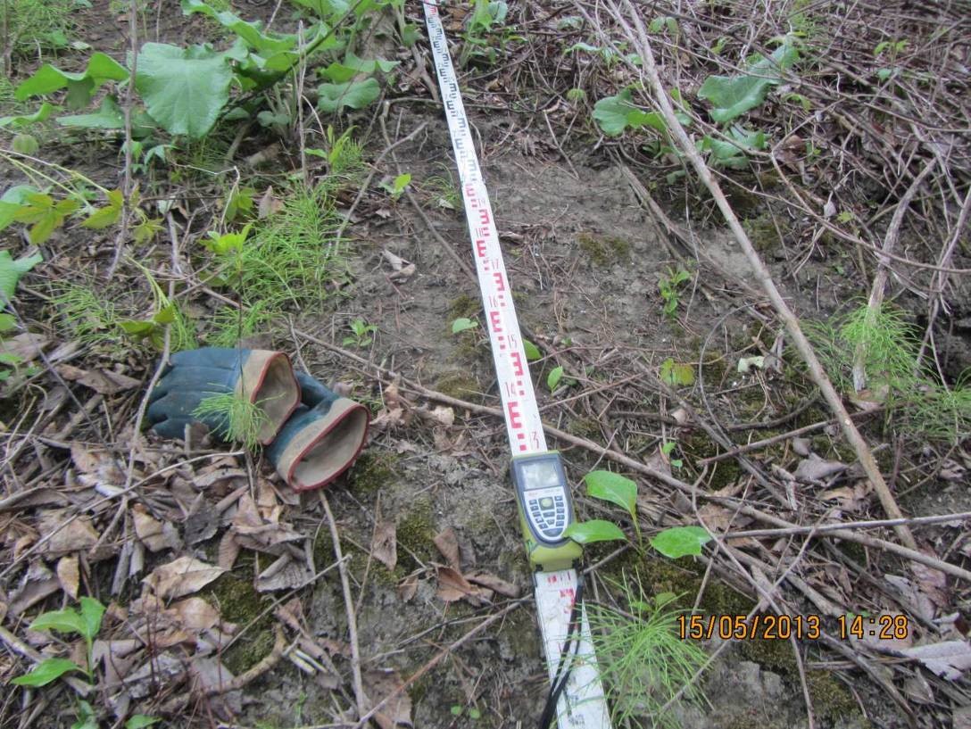 Mesure de l'inclinaison de la pente par un clinomètre et une échelle