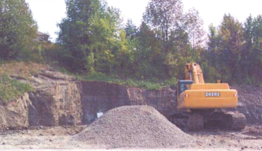 Excavation réalisée lors de la construction, causant un glissement de terrain